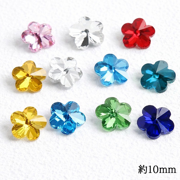 【フラワーガラスパーツ】約10mm メッキガラス 花 10個売り カラフル ピアス/イヤリング ハンドメイド素材
