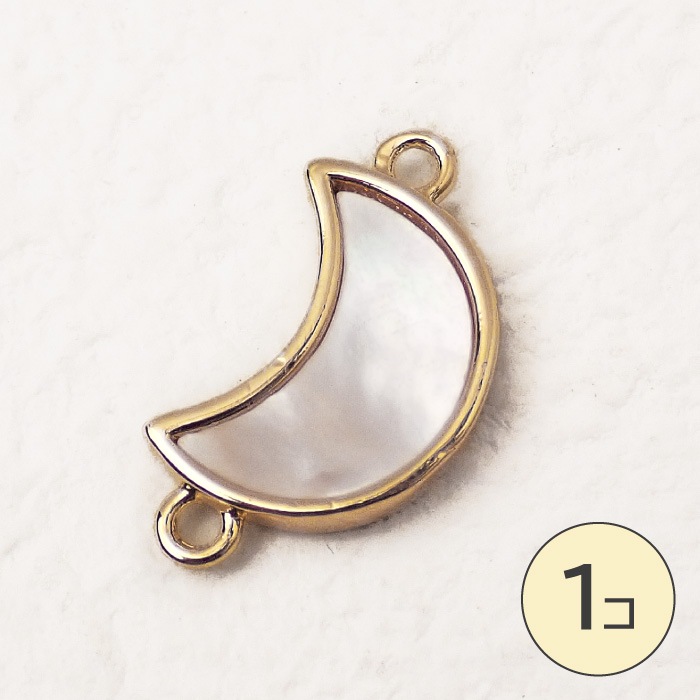 【シェル 月チャーム】 三日月 マザーオブパール 上品 ゴールド調 ハンドメイド パーツ 1個売り