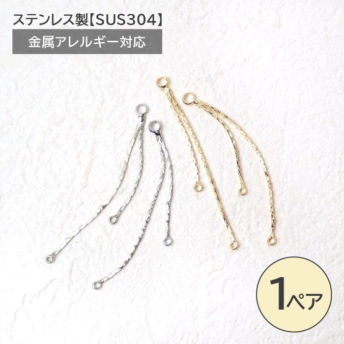 二股チェーン 約43mm ゴールド シルバー パーツ ペア売り ピアス イヤリング 揺れ感 素材
