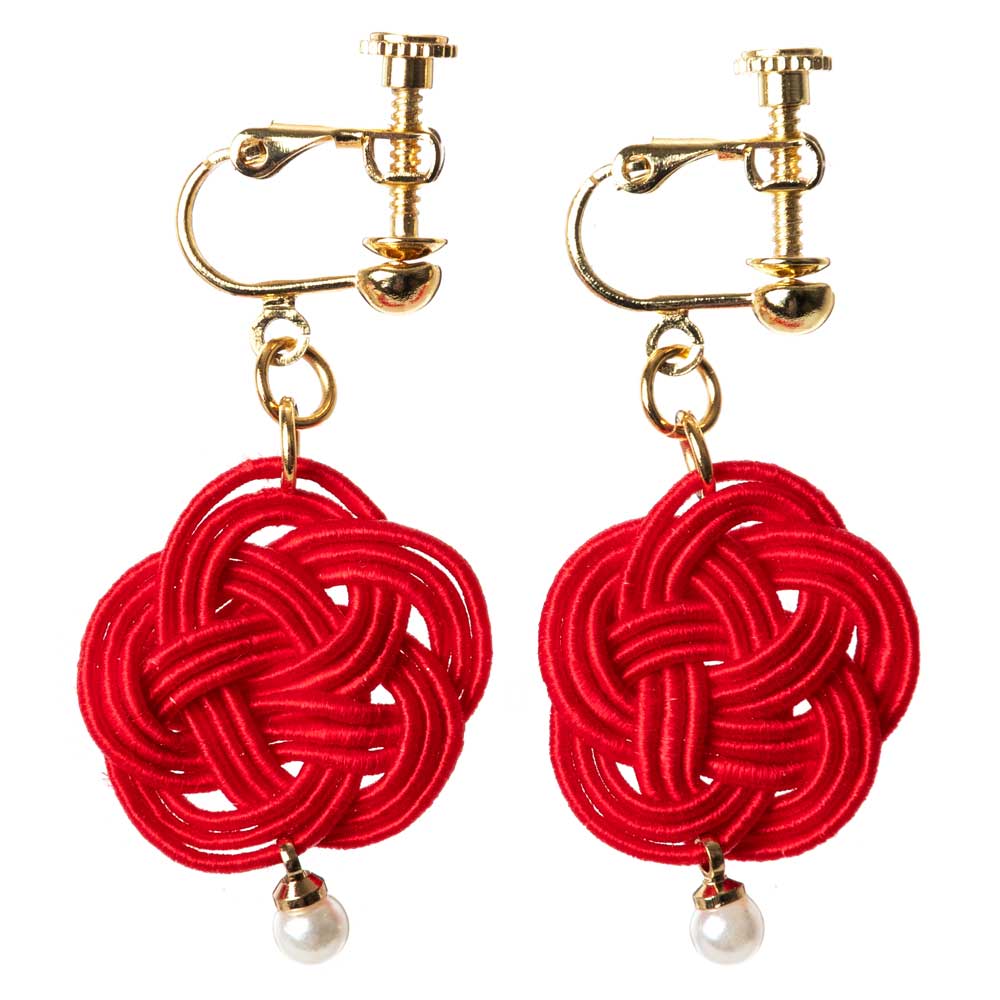kyuu -きゅう- 梅結びイヤリング レッド 就労支援事業所で製作された水引アクセサリー 桐箱入り 日本製 和装 洋装 冠婚葬祭