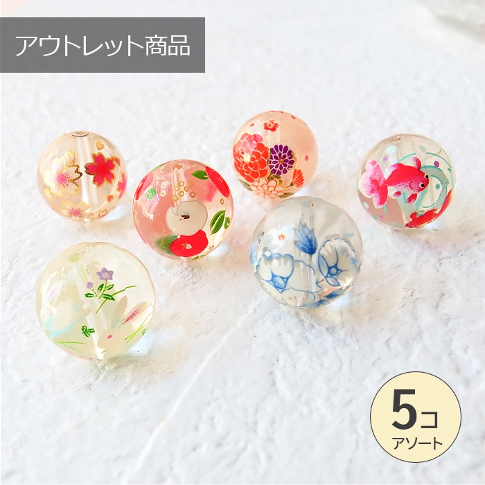 【訳あり・アウトレット品】 水晶 プリントストーン ( 5個アソートセット ) プリントビーズ パワーストーン 水晶 花 フラワー...