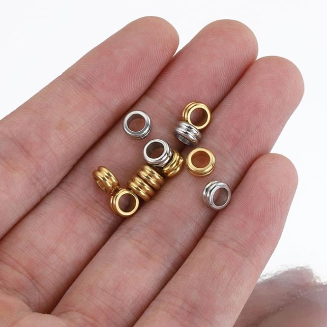 金属アレルギー対応 ビーズ 【円筒形】ステンレス(304)【10個売り】6mm コラムビーズ ロンデル