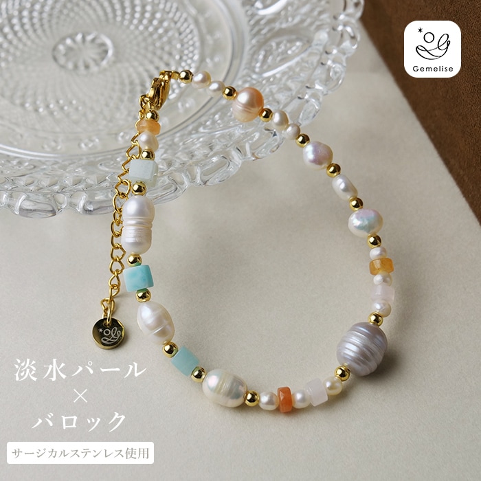Gemelise ジェメリース 淡水パール×天然石(バロック・めのうなど)ブレスレット S75223207