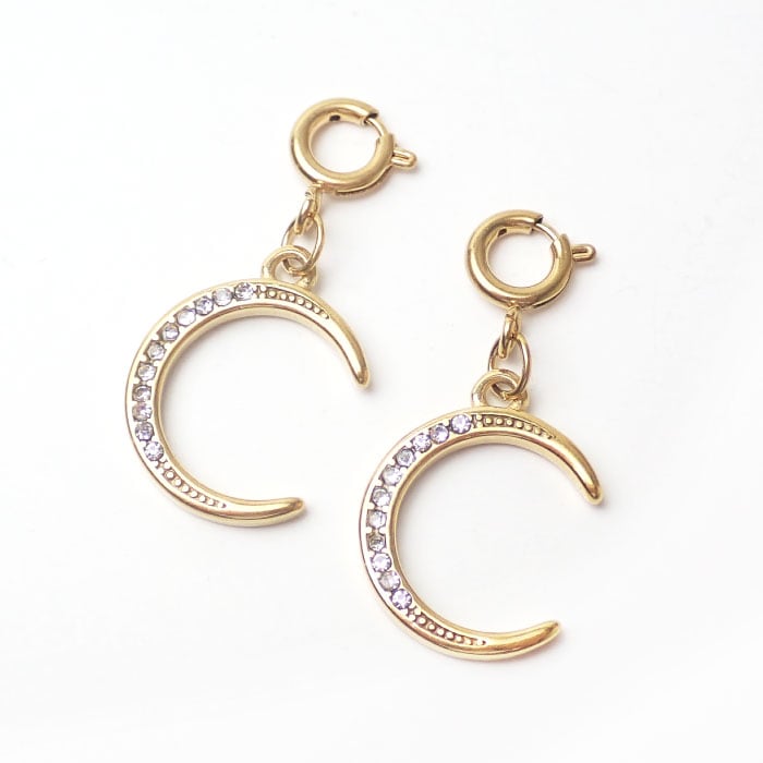 ステンレス製 三日月 チャーム ゴールド 引き輪付き 金属アレルギー対応 ジルコニア付き ペンダントトップ