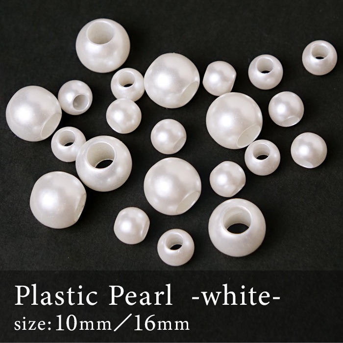 樹脂パールビーズ 大穴 【 ホワイト 】 10mm 16mm 【20個/50個】 ラウンド プラパール パール 樹脂 パーツ アク...