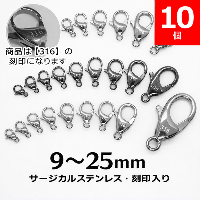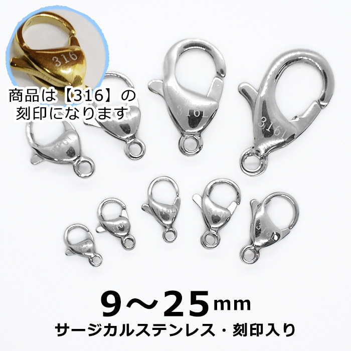 【316 刻印入り】 サージカルステンレス 金属アレルギー対応 カニカン 9-25mm 医療用ステンレス SUS316 シルバー...