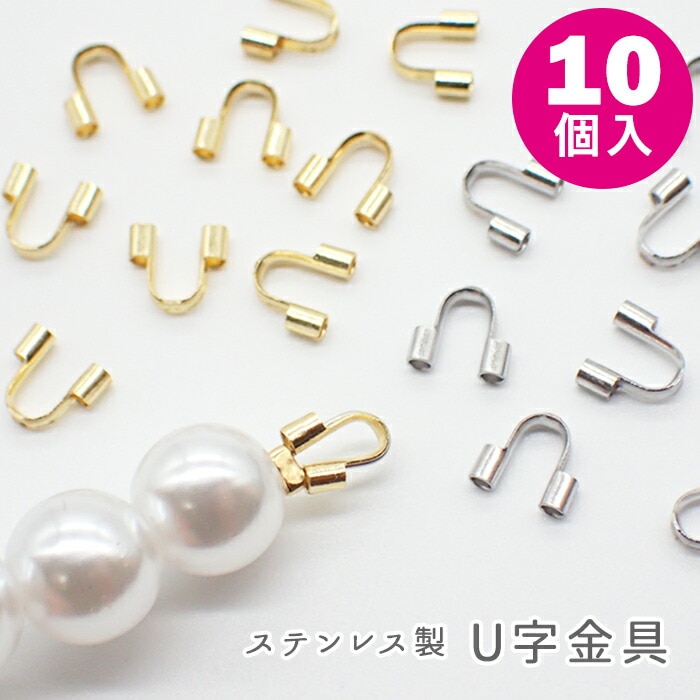 ステンレス製 U字金具 10個 0.7/0.8/1.0mm ゴールドシルバー ボールチップ不要 U字カン 金属アレ対応 エンドパ...