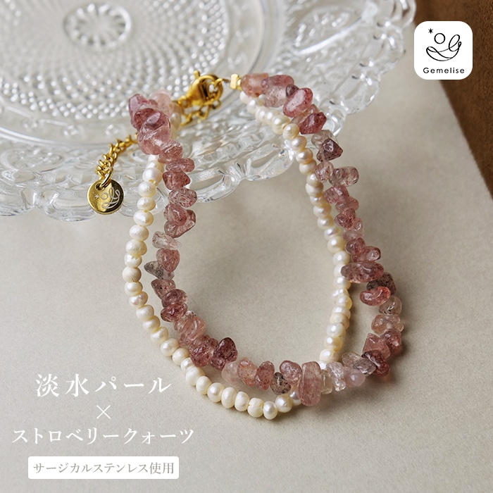 Gemelise ジェメリース 淡水パール×天然石(バロック・ベビー/ストロベリークォーツ)ブレスレット 750304