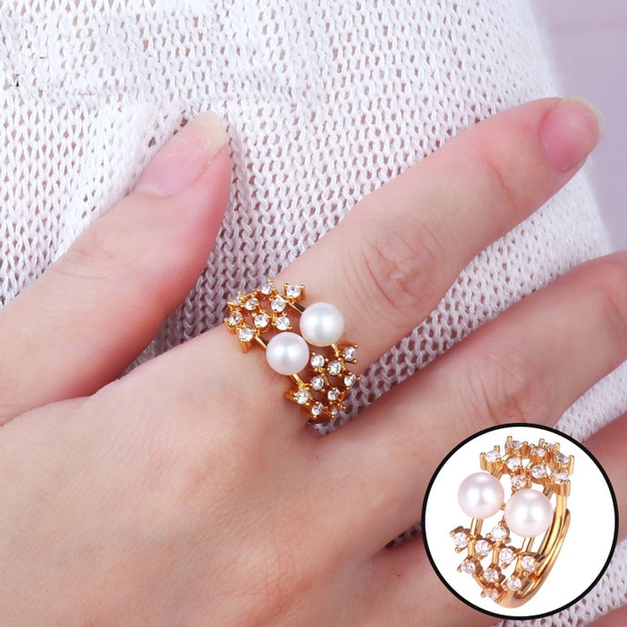【06. 淡水パール リング】フリーサイズ 指輪 レディース ゴールド シルバー 国内発送