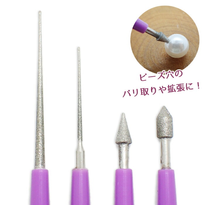【6. ビーズリーマー 4本セット 】1個 工具 ダイヤモンド やすり ヤスリ ビーズの穴 広げる バリを取る ビーズ パールビー...