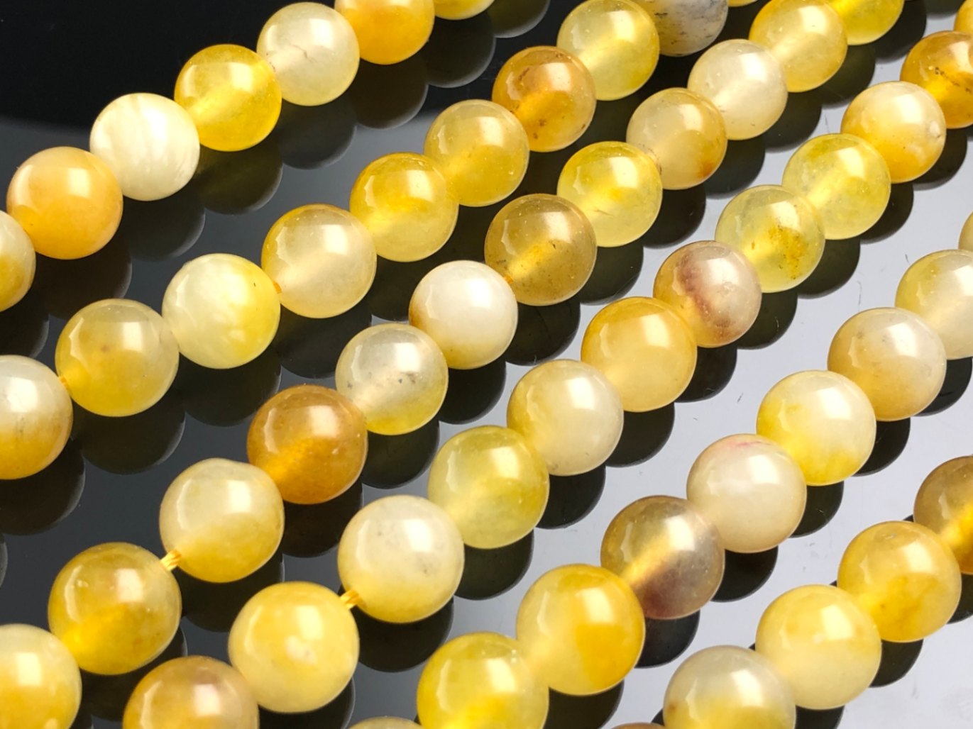 人気!★鮮やかでカラフル★天然石ビーズ/ミックスハニーイエロージェイド/約10mm/ラウンド/1連【天然石/パワーストーン】【アメ...