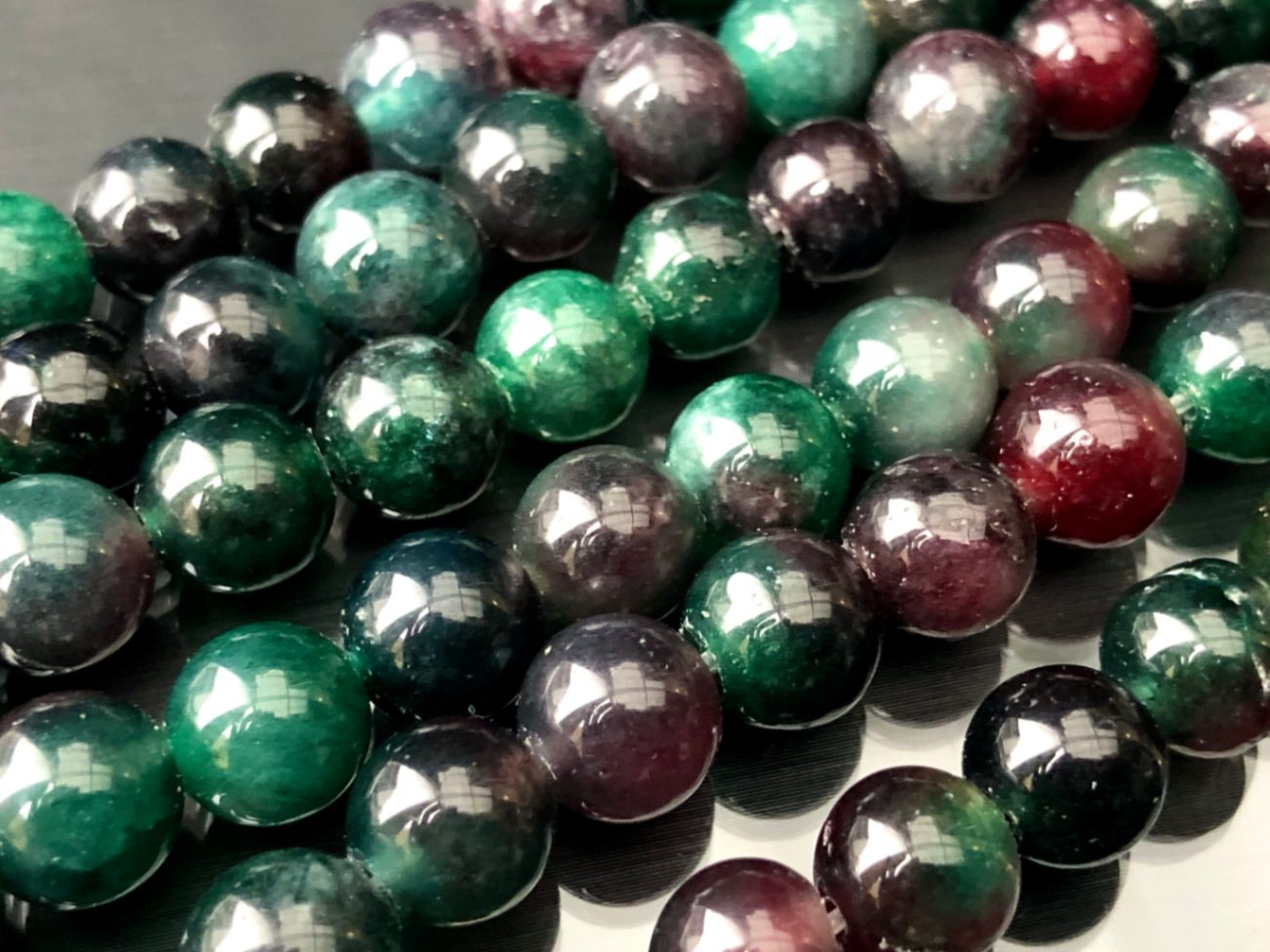 人気!★鮮やかでカラフル★天然石ビーズ/ダークルビーインゾイサイトジェイド/約8mm/ラウンド/1連【天然石/パワーストーン】【ア...