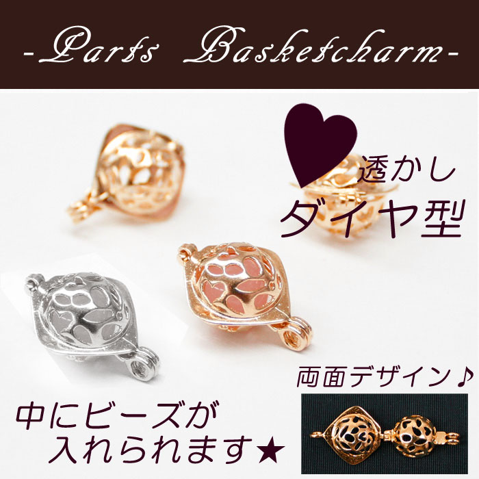 カゴパーツ ダイヤ 8mm玉サイズ リバーシブル 【約19.7mm×15mm カンつき パーツ ばら売り】 1個 ハート透かし柄 ...