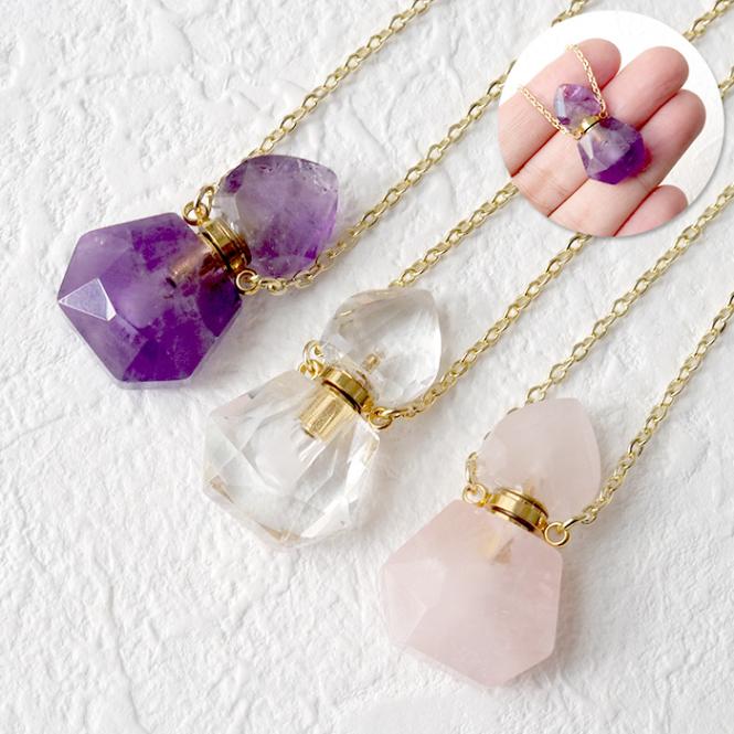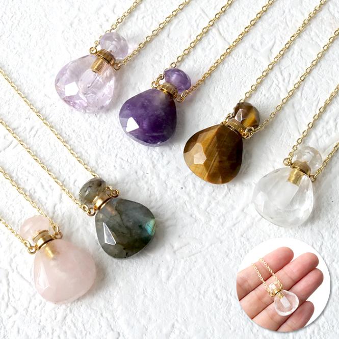 【天然石 Rタイプ 香水瓶 ネックレス スクエアカット】1個 アロマ ペンダント ステンレス 金属アレルギー対応 国内発送