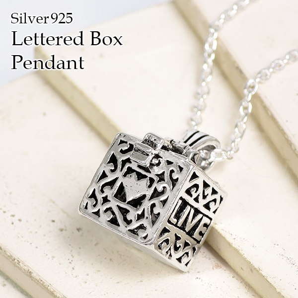 透かし レタード ボックス シルバー ネックレス アラベスク アロマ ロケット ペンダント ハート 唐草 シルバー925