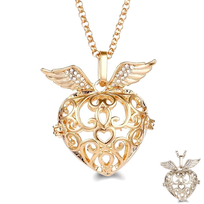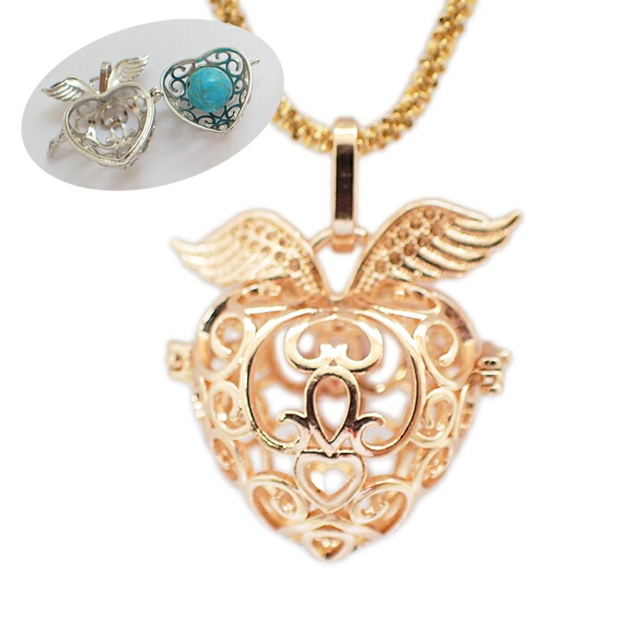 カゴパーツ【ウイングハートストーン付き】36mm×24mm ネックレスチェーン付き アロマペンダント 精油対応