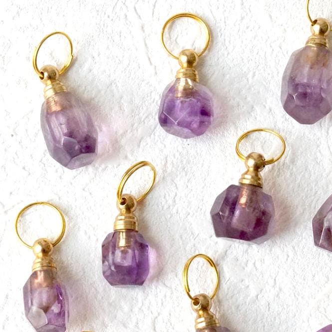 【天然石 Vタイプ 香水瓶 アメジスト チャーム ラフカット】 1個 ペンダントトップ 原石 アロマ ペンダント ステンレス パワ...