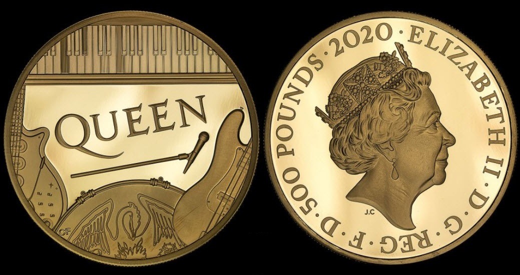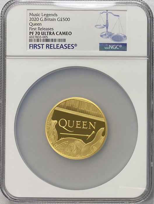 【動画あり】グレートブリテン 2020年 音楽の伝説シリーズクイーン 5オンス500ポンドプルーフ金貨 ファーストリリース NGC...