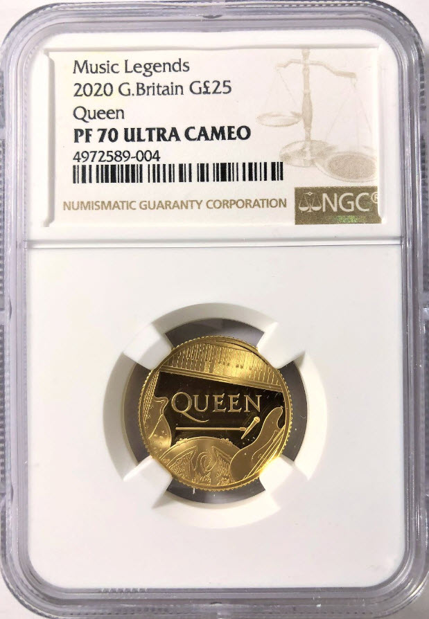 グレートブリテン2020年音楽の伝説シリーズクイーン1/4オンス25ポンドプルーフ金貨NGC-PF70UCAM