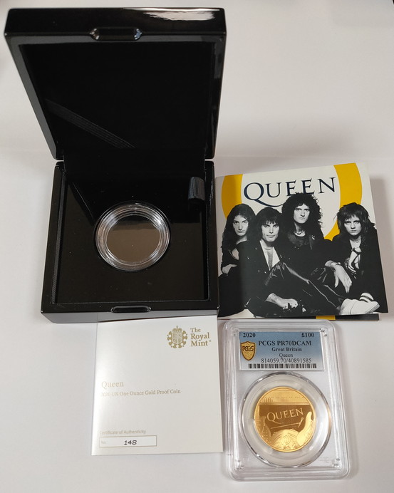 グレートブリテン 2020年 音楽の伝説シリーズ クイーン1オンス 100ポンドプルーフ金貨 PCGS-PR70DCAM箱付き