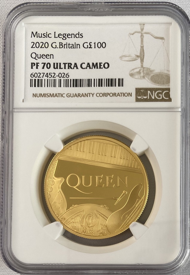 グレートブリテン 2020年 音楽の伝説シリーズ クイーン 1オンス 100ポンドプルーフ金貨 NGC-PF70 UCAM