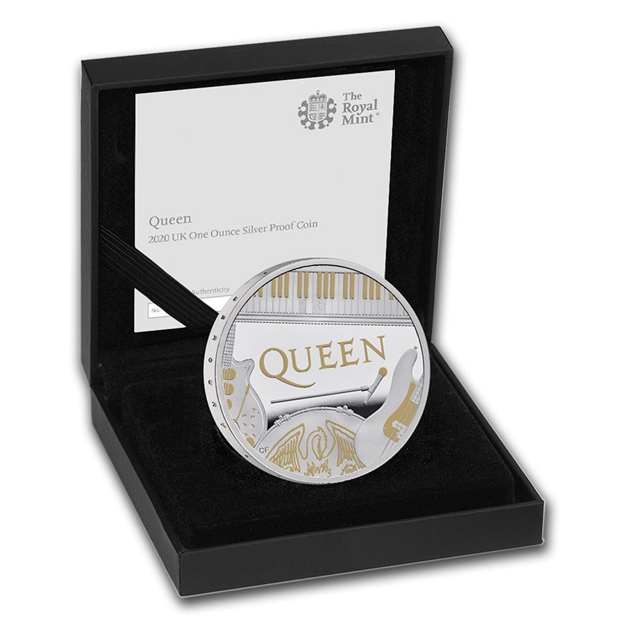グレートブリテン2020年音楽の伝説シリーズクイーン1オンス2ポンドプルーフ銀貨オリジナル箱付き2