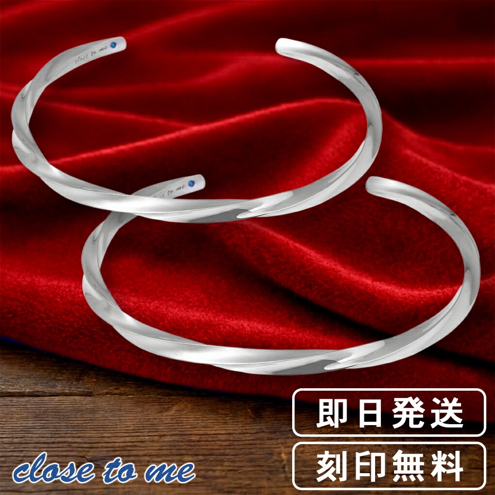 【close to me】ツイステッドプリズム ブルーダイヤモンド シルバー ペアバングル【ギフトBOX付き】