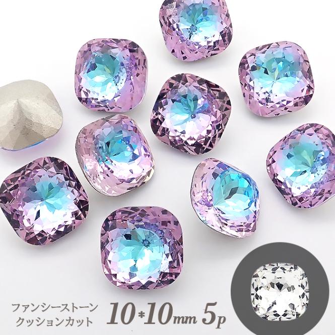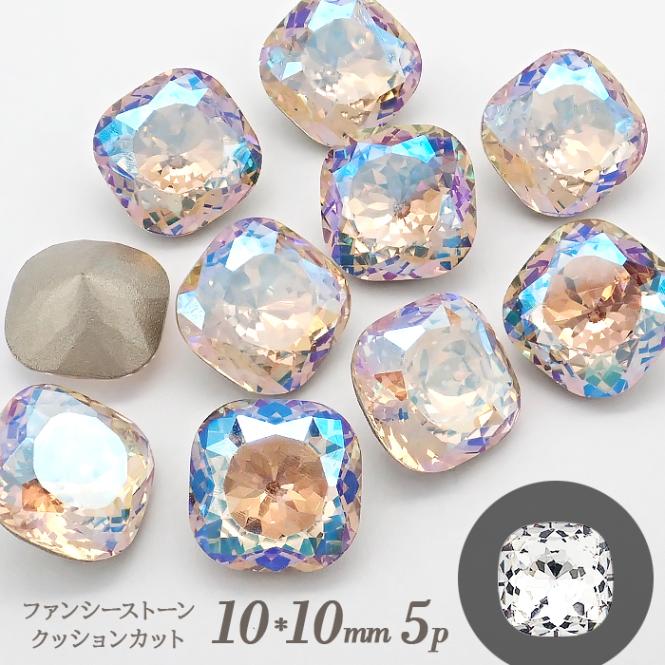 ファンシーストーン 5個 【01-13. クッションカット 10×10mm へヴンズライト 】 オーロラ加工 ラインストーン Vカ...