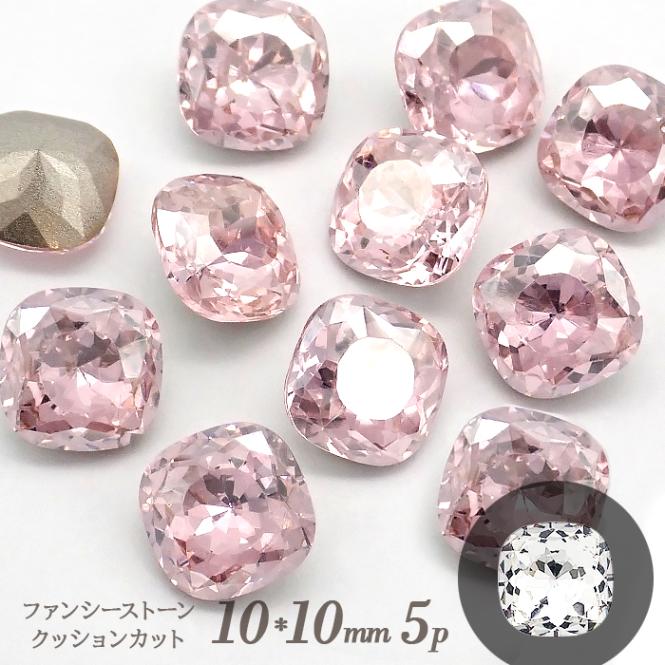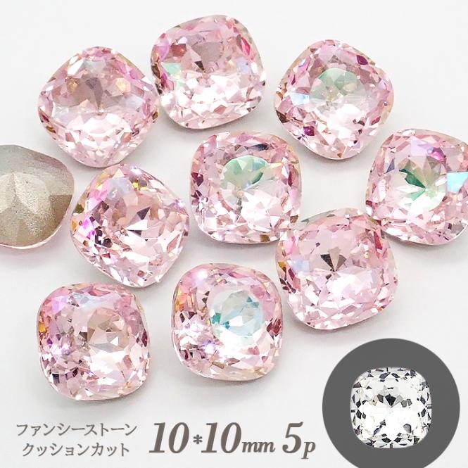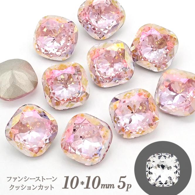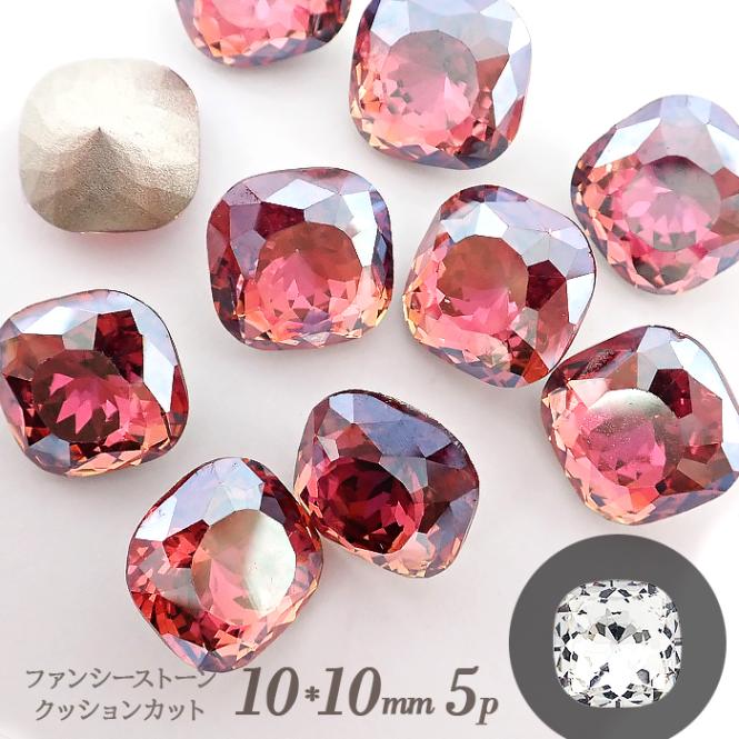 ファンシーストーン 5個 【01-6. クッションカット 10×10mm シャイニーローズ 】 オーロラ加工なし ラインストーン ...