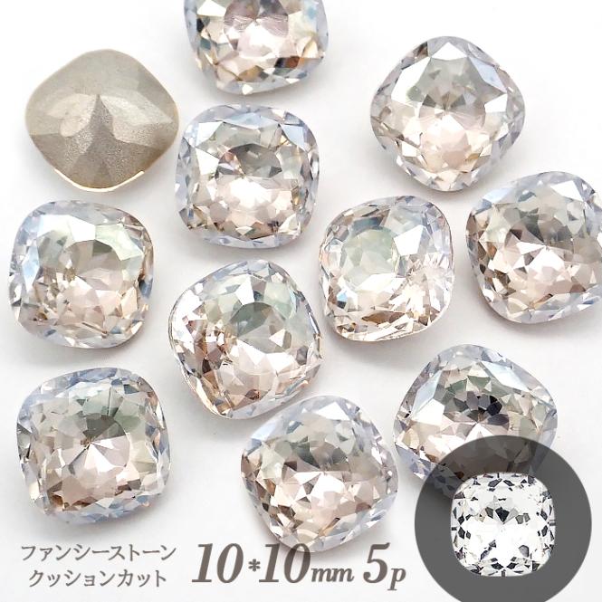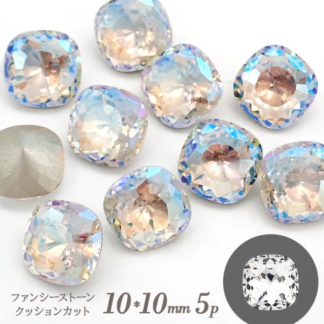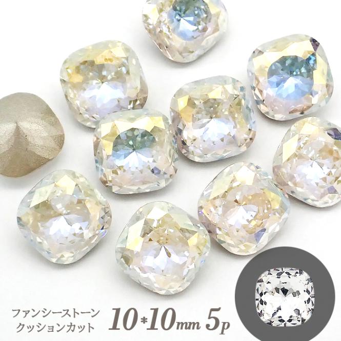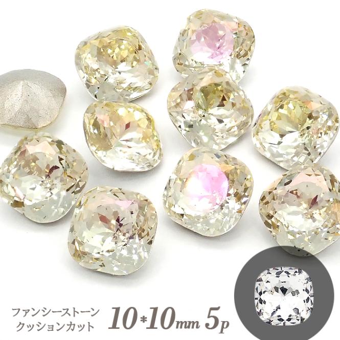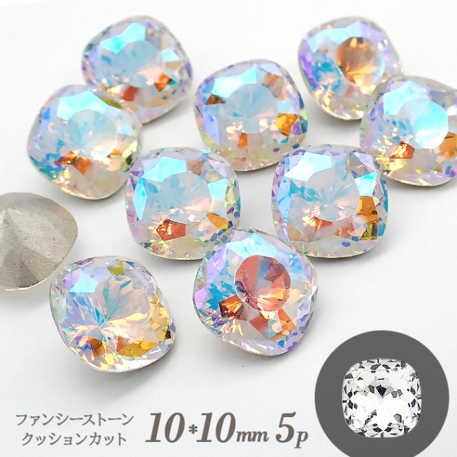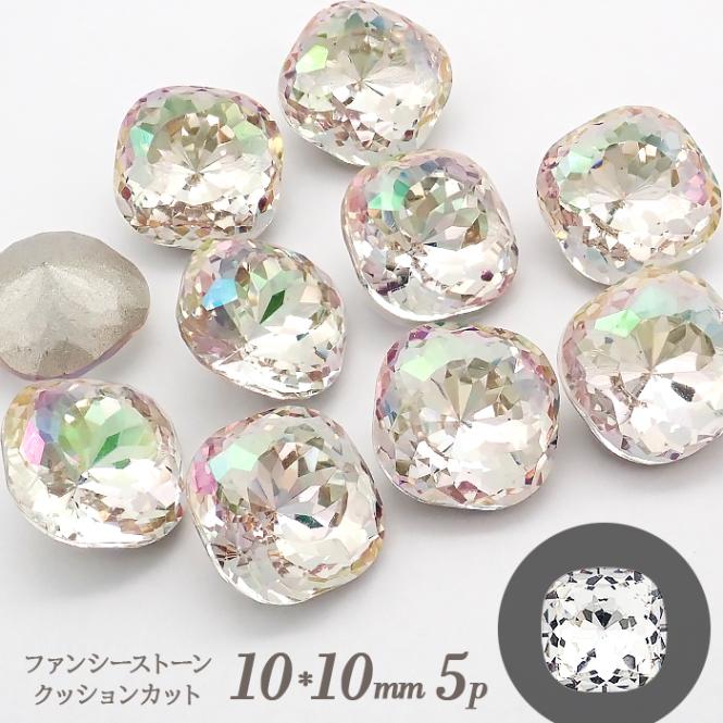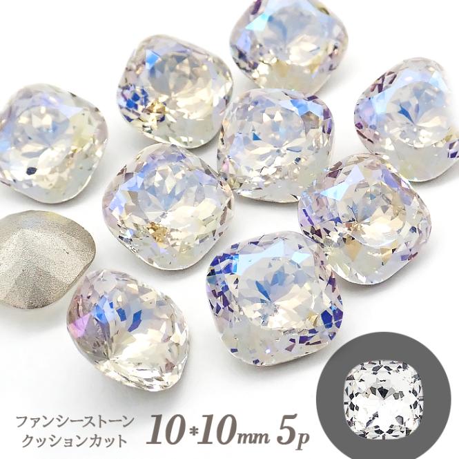 ファンシーストーン 5個 【01-12. クッションカット 10×10mm スターリーホワイト 】 オーロラ加工 ラインストーン ...