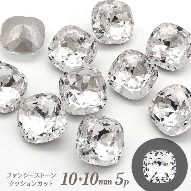 ファンシーストーン 5個 【01-1. クッションカット 10×10mm クリスタル 】 オーロラ加工なし ラインストーン Vカッ...