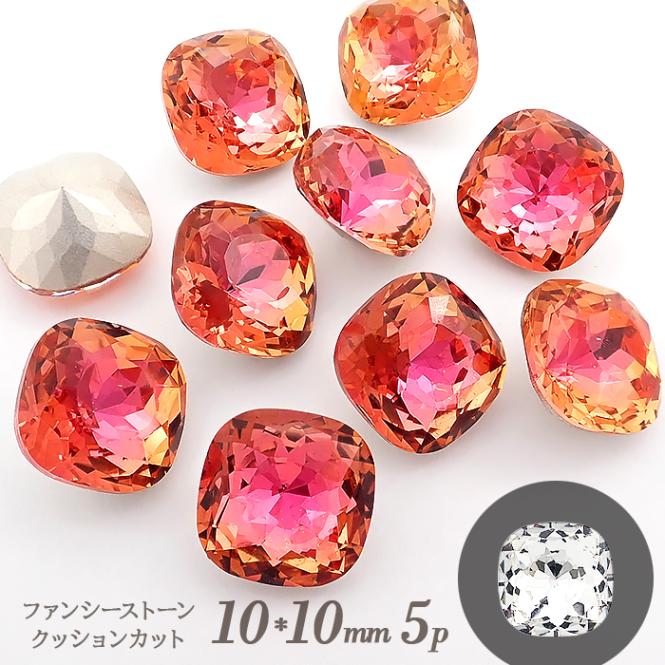 ファンシーストーン 5個 【01-20. クッションカット 10×10mm サンセットピンク 】 オーロラ加工なし ラインストーン...