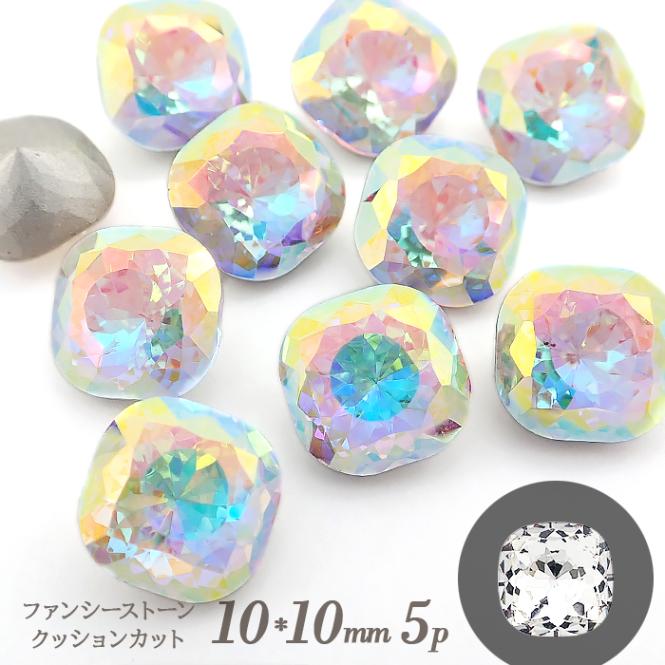 ファンシーストーン 5個 【01-8. クッションカット 10×10mm クリスタルAB 】 オーロラ加工 ラインストーン Vカッ...