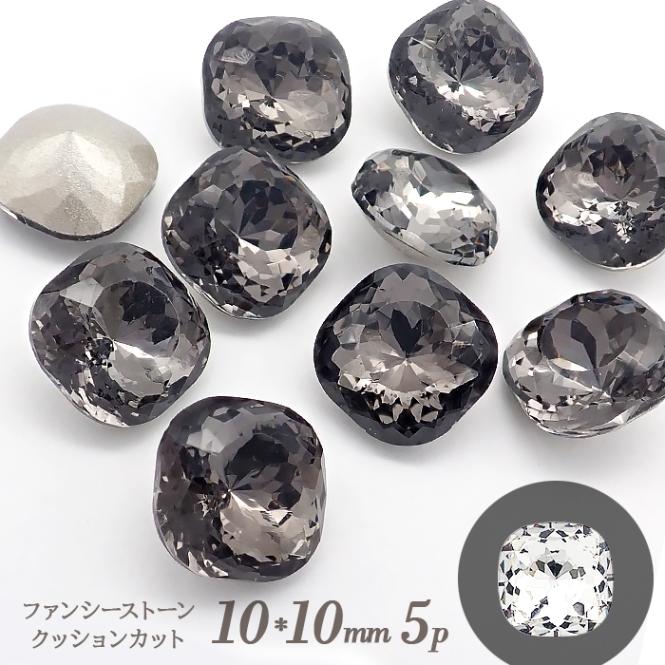 ファンシーストーン 5個 【01-7. クッションカット 10×10mm ミスティグレー 】 オーロラ加工なし ラインストーン V...