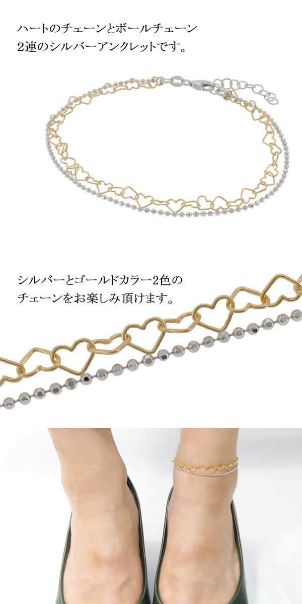 ハート×ボールチェーン ゴールドカラー シルバーアンクレット レディース アンクレット