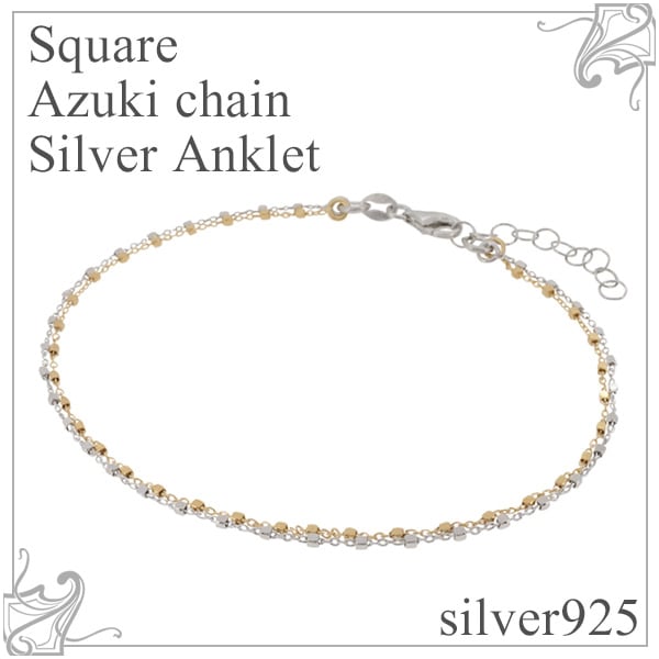 スクエア あずきチェーン ゴールドカラー シルバーアンクレット レディース アンクレット シルバー 女性用 シルバー925 プレゼ...