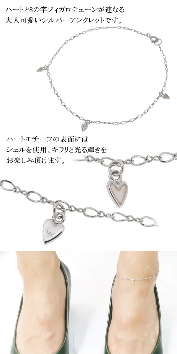 ハート 8の字 フィガロチェーン ゴールドカラー シルバーアンクレット