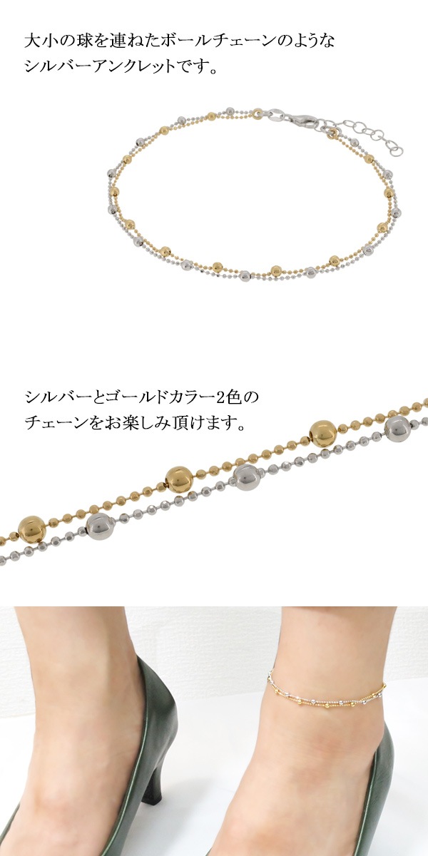ゴールドカラー ボールチェーン シルバーアンクレット レディース アンクレット
