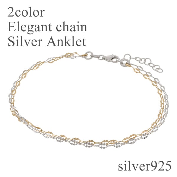 ゴールド シルバーWチェーン シルバーアンクレット 925 シルバー925 レディース アンクレット シルバー 女性用 レディース...