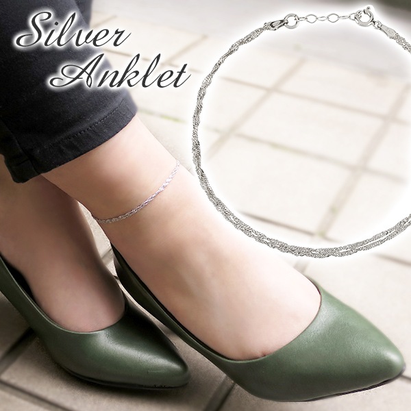 スクリューチェーン 2連 シルバーアンクレット レディース アンクレット シルバー チェーン 女性用 シルバー925 プレゼント ...