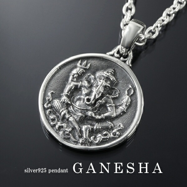 ガネーシャ コイン L ペンダントトップ ネックレスチャーム (チェーンなし) シルバー925 ネックレス ペンダント 象 ゾウ ...
