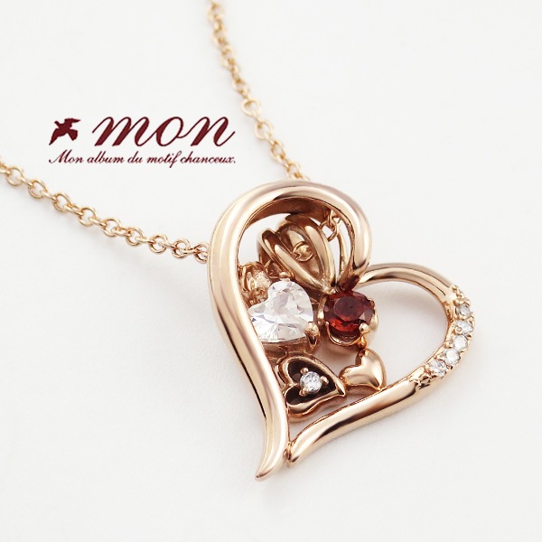 7way オープンハート 天然 ガーネット ネックレス シルバー925 ピンクゴールドカラーコート かわいい 大きめ ハート 天然...