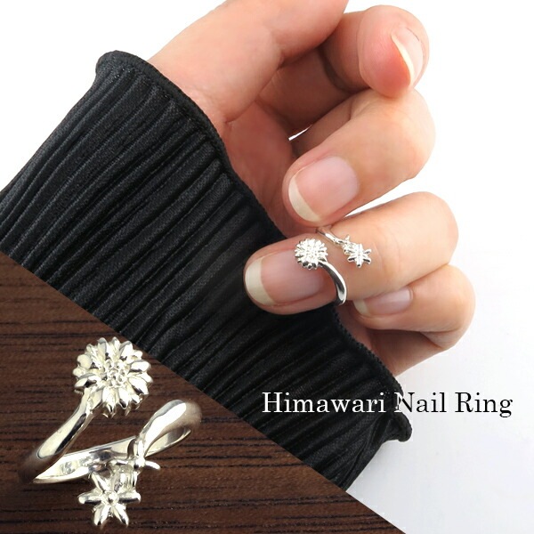 ひまわり ネイルリング フリーサイズ 調節可能 シルバー925 リング 指輪 ピンキーリング ミディリング ファランジリング 爪 ...