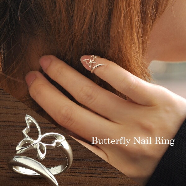 透かし 蝶 ネイルリング フリーサイズ 調節可能 シルバー925 リング 指輪 ピンキーリング ミディリング ファランジリング 爪...