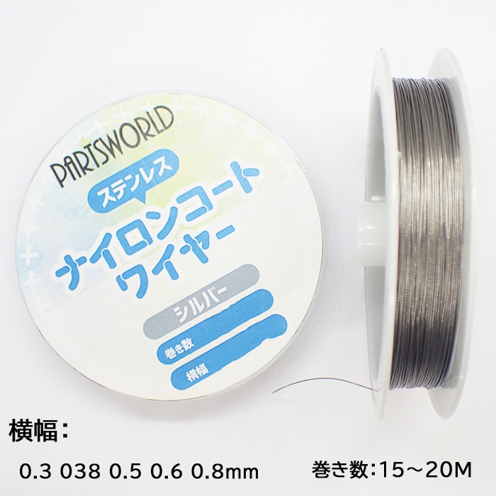 【 アクセサリー用ナイロンコートワイヤー 】0.3/0.38/0.5mm 約20m ステンレス 金属アレルギー対応 銀 シルバー ...