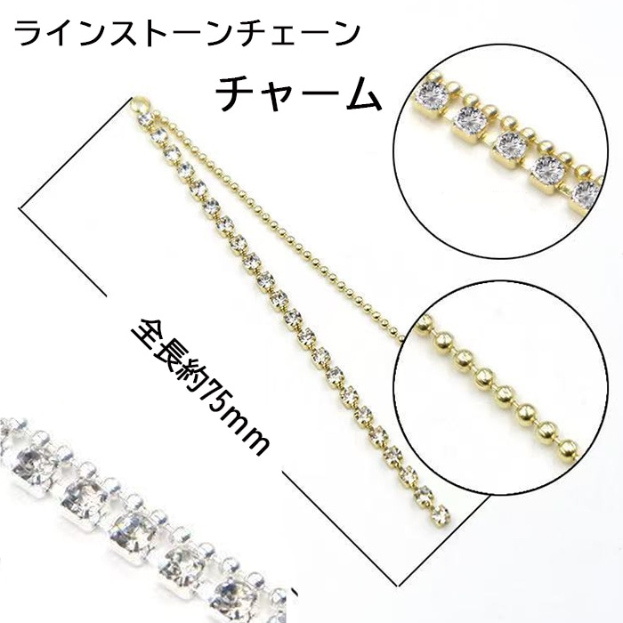 416. メタルチャーム 2連ボールチェーン チャーム 1ペア(2個入り) ゴールド シルバー ラインストーン