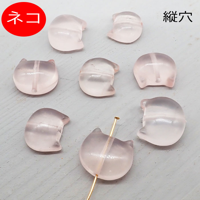 ネコ ビーズ (1個)縦穴【 スターローズクォーツ 】ピンク パワーストーン 顔 猫 国内発送