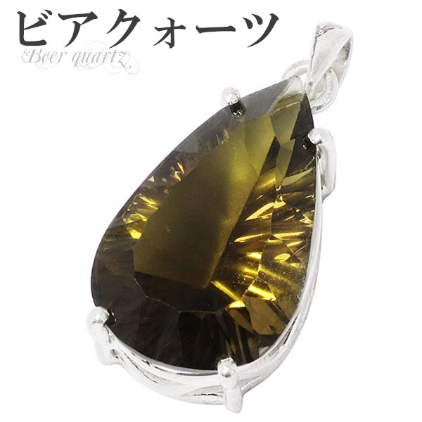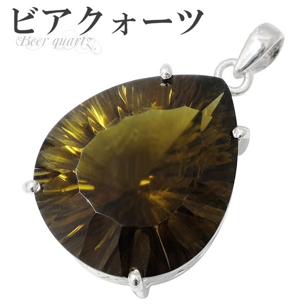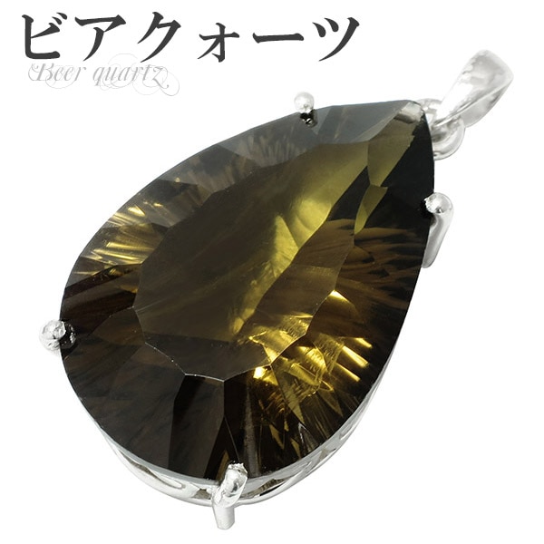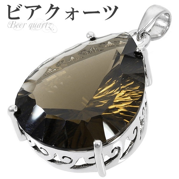 ビアクォーツ ウィスキークォーツ シルバー ペンダントトップ 大粒 ドロップカット 天然石 パワーストーン ペンダント ヘッド ト...