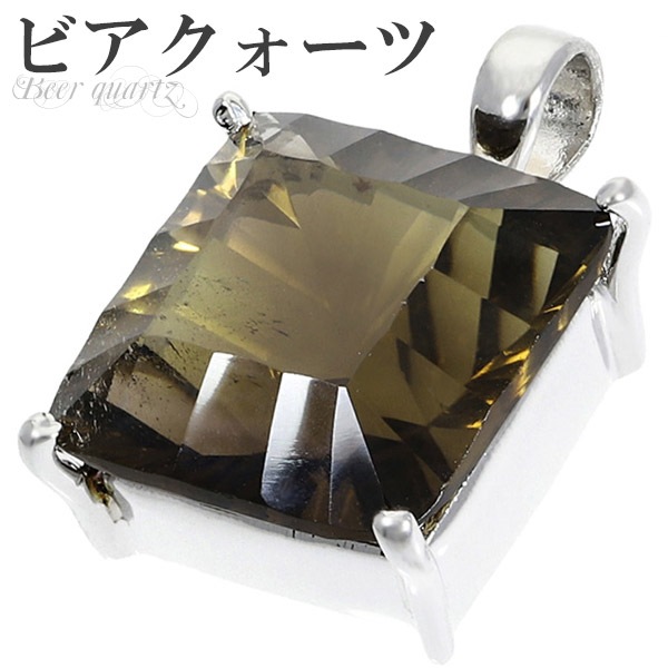 ビアクォーツ ウィスキークォーツ シルバー ペンダントトップ スクエア カット 天然石 パワーストーン ペンダント ヘッド トップ...