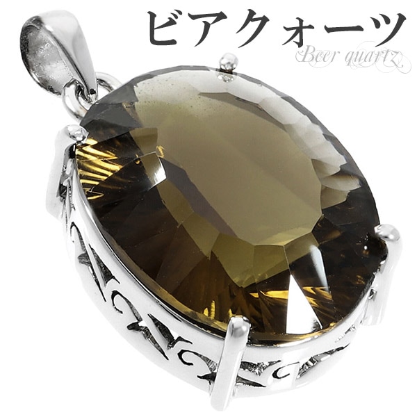 ビアクォーツ ウィスキークォーツ シルバー ペンダントトップ 大粒 オーバル カット 天然石 パワーストーン ペンダント ヘッド ...